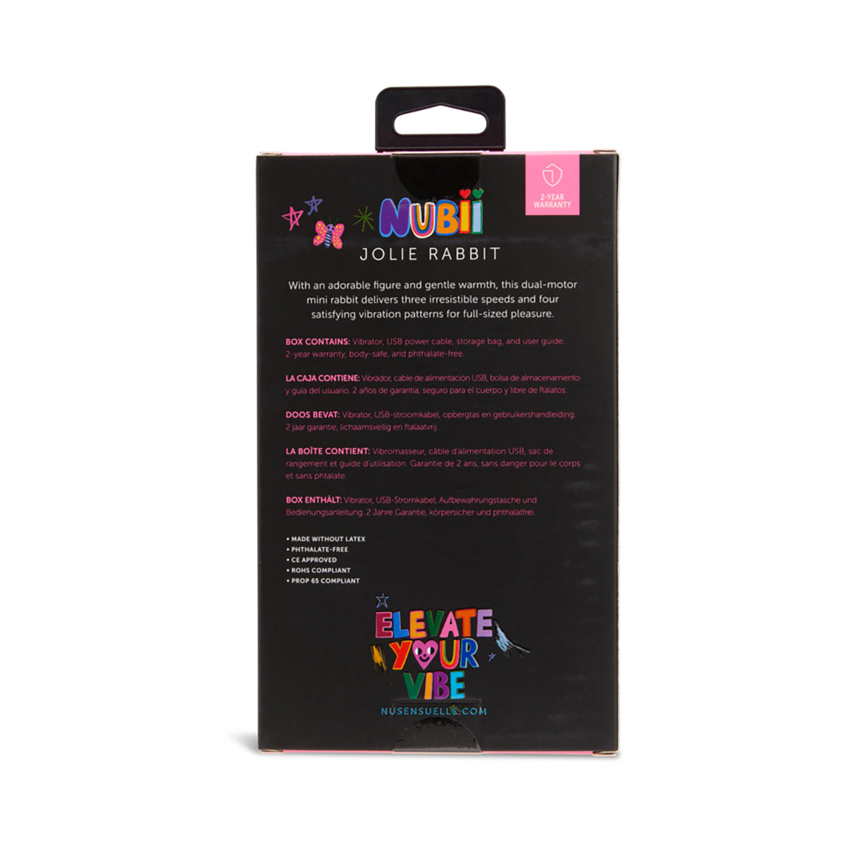 PUT A BOUNCE INTO YOUR STEP by indulging in the sensuous warmth of our seductive mini rabbit, Jolie. With an adorable figure, this dual-motor mini rabbit delivers three irresistible speeds and four satisfying vibration patterns for luxurious thrills. Kick in the independently controlled warming function and hop to new heights in ecstasy as you surrender to Jolie's seductive charm. The rabbit's petite size makes for the ideal travel companion that will undoubtedly provide full-sized pleasure no matter where you are in the world!