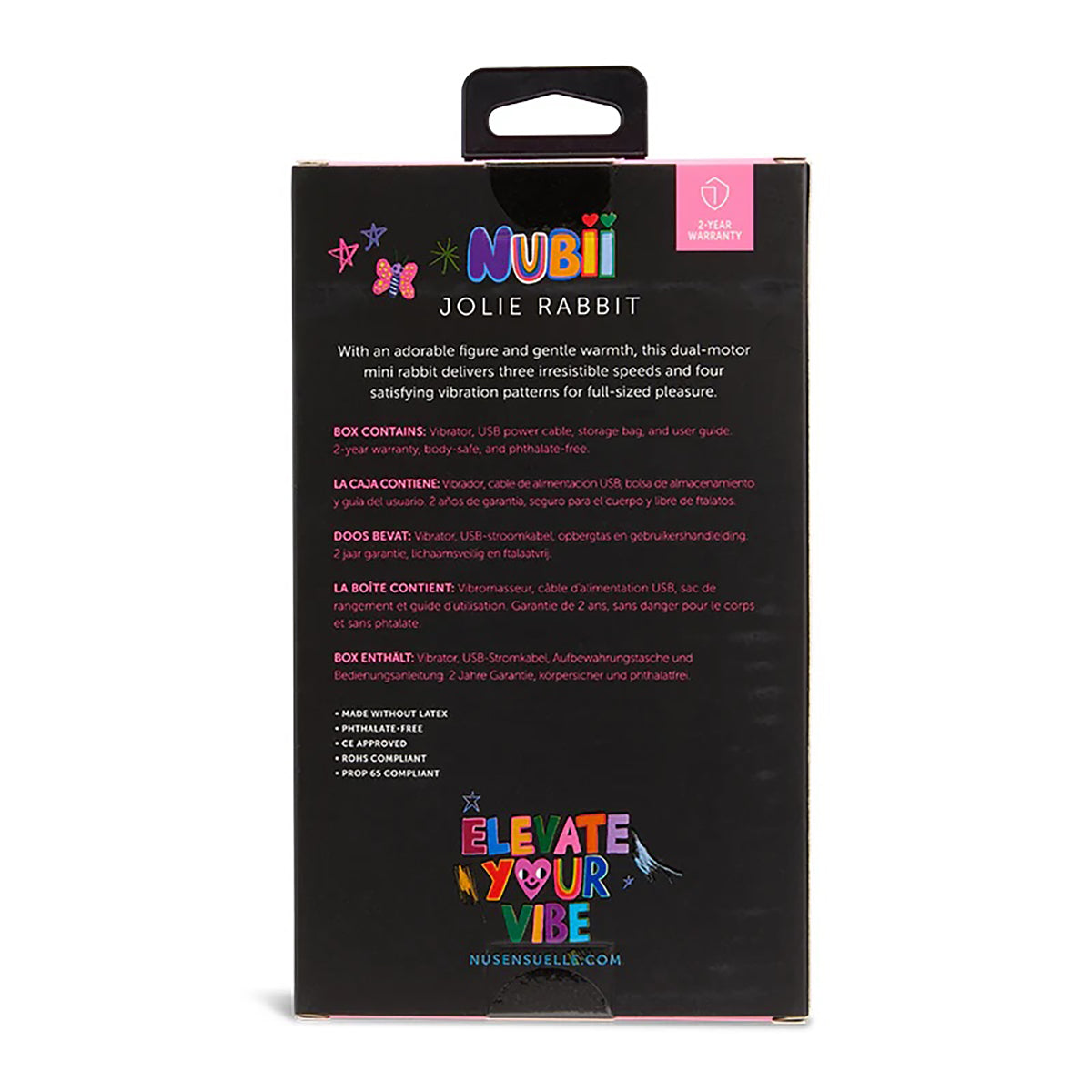 PUT A BOUNCE INTO YOUR STEP by indulging in the sensuous warmth of our seductive mini rabbit, Jolie. With an adorable figure, this dual-motor mini rabbit delivers three irresistible speeds and four satisfying vibration patterns for luxurious thrills. Kick in the independently controlled warming function and hop to new heights in ecstasy as you surrender to Jolie's seductive charm. The rabbit's petite size makes for the ideal travel companion that will undoubtedly provide full-sized pleasure no matter where you are in the world!