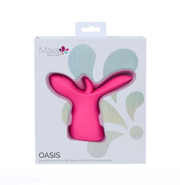 Dive in with Oasis, our Thumping and Licking Vibrator. Designed with dual motors, it delivers powerful licking and thumping action right where you want it. Its ergonomic design ensures that every sensation is perfectly targeted. The 100% medical-grade silicone feels soft and luxurious against your skin. Customize your vibe with 3 speeds of tongue motion and 10 functions of thumping action.