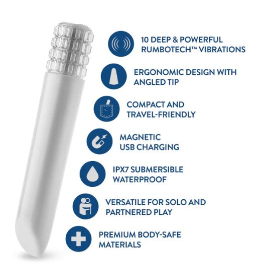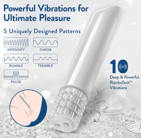 Awaken your passion with Oh My Gem Bold. Adorned with radiant Diamond gems, this elegant vibe captures the allure of the heirloom precious Diamond stone, bringing a touch of sophistication to every intimate moment. Experience 10 deep, rumbly vibration modes—5 speeds and 5 patterns—powered by Blush’s RumboTech™ for deep, resonant sensations. Designed with beauty and ease, Bold’s sleek, petite form is perfect for travel, featuring an angled precision tip that delivers pinpoint pleasure and stimulation. Crafted from body-safe materials, it’s IPX7 waterproof and recharges effortlessly with a magnetic USB, inviting you to explore wherever your desires take you. Make Oh My Gem Bold the crown jewel of your collection—a celebration of sensuality and self-love. Savor its powerful vibrations and luxurious allure, time after time.