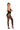 Opaque and crochet vertical striped footless bodystocking with criss cross front detail and open crotch.