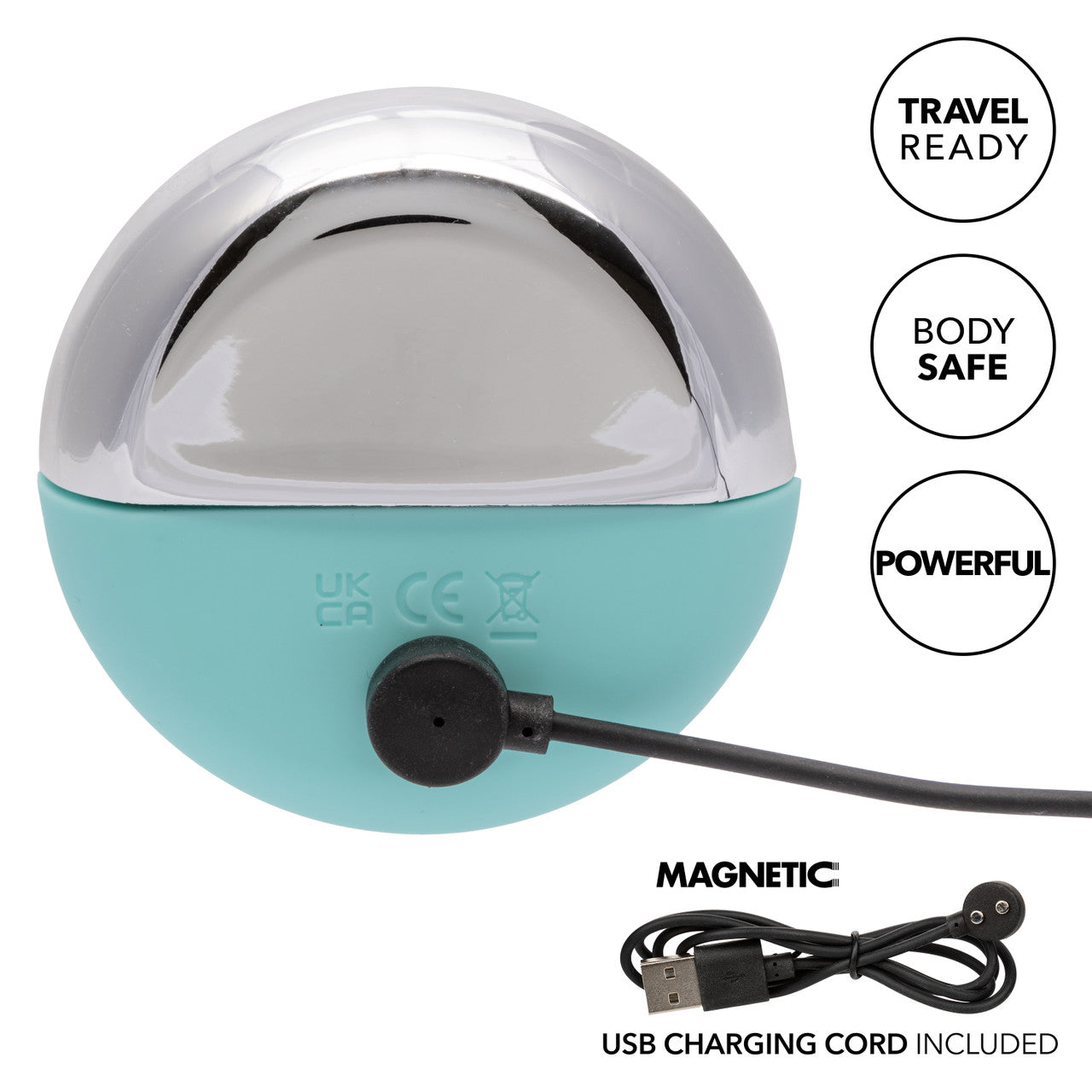 Features: Phthalate Free, Rechargeable, Vibrates. Waterproof rating IPX7. Power Source: USB Rechargeable, cord included. Materials type: Silicone Massager, ABS Plastic with Metallic Plating Decor. Measurements: 2.75 inches by 2 inches Teaser. 2.75 inches by 2.75 inches Overall. Bulk weight 2.6 ounces. Package 7.4 ounces. Package: 1.5 inches by 4 inches by 7 inches. Maximum run time 70 minutes. Maximum charging time: 90 minutes. Speeds: 10. Categories: Vibrators, Clitoral, Eco-Friendly Sex Toys, Rechargeable Vibrators, Sex Toys for Women, Clit Cuddlers. 2024.