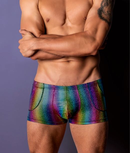 Add a splash of color and functionality to your store's offerings with our men's rainbow underwear from the Pack & Play collection by Male Power. The Pocket Short is designed with front hip pockets, perfect for concealing your most private valuable goods. Featuring a low-cut slimming waistband and high-cut legs, this underwear delivers both style and comfort. The contoured uplift pouch provides extra support and a flattering fit, making it a standout piece in any men's underwear collection. Ideal for retailers looking to offer playful, high-quality men's underwear that combines practicality with vibrant, eye-catching design.