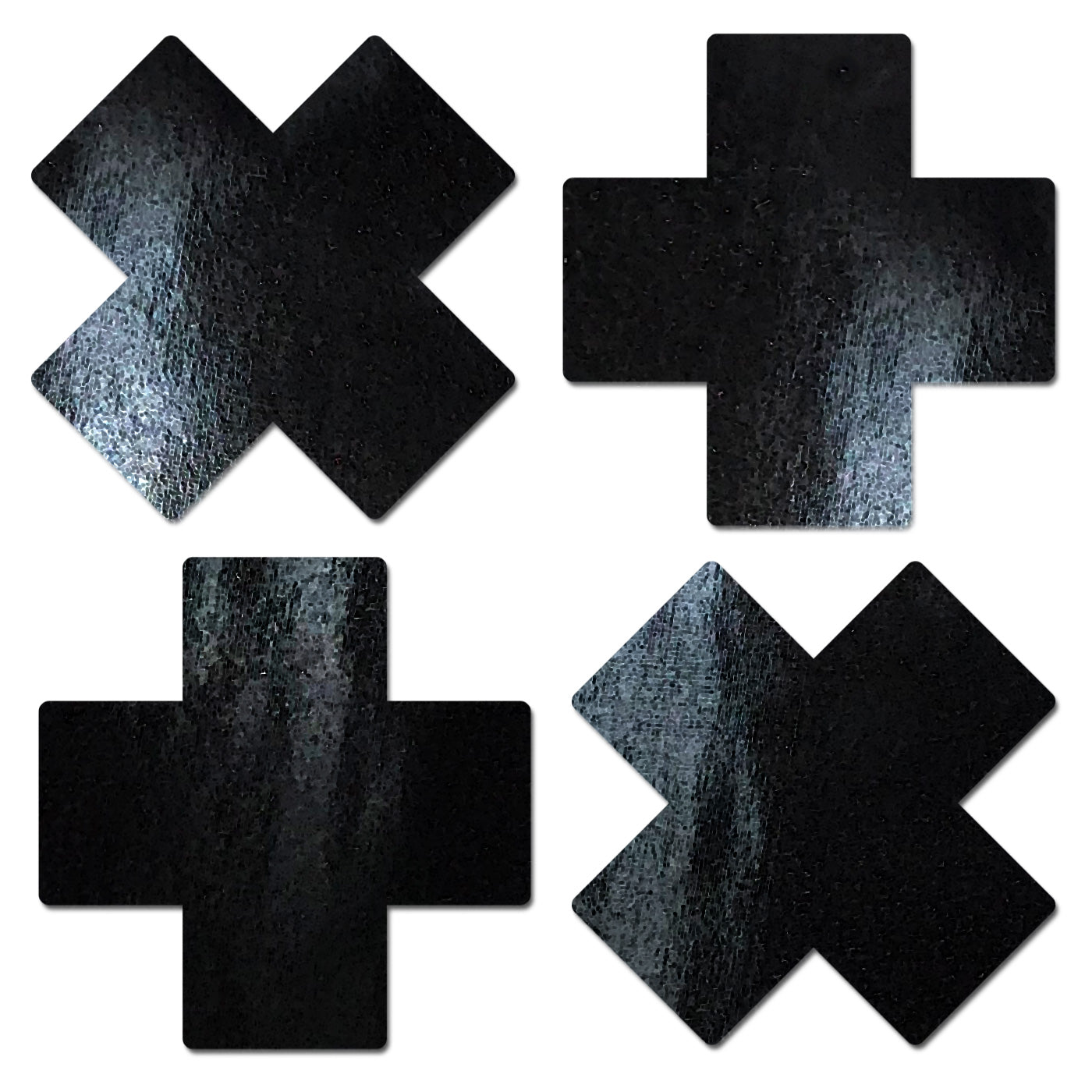 Petite Plus X Two Pair of Small Liquid Black Cross Nipple Pasties by Pastease Brand. Petite Plus X Two Pair of Small Liquid Black Cross Nipple Pasties by Pastease. Petite Plus X Two Pair of Small Liquid Cross Nipple Pasties by Pastease are hand made in the USA of soft form fitting material that forms seamlessly to curves and resists wrinkling over hardening nipples. Just peel and stick on clean, dry skin. All Pastease feature latex free, medical grade, waterproof adhesive that stay securely in place for as long as you like and until they are gently removed. Conceal or reveal with Pastease Nipple Pasties when worn with a sexy outfit, daring bikini, sheer top, revealing dress, Hefty bag, body lotion, crazy costume, party theme or nothing at all! Includes Two 2 Pairs. Dimensions: 2.1 inches by 2.1 inches. Coverage diameter 1.2 inches. Pastease are the Funmaker that brings out your inner Tease! All Pastease products are hand made, so the finished product you receive may vary slightly from the posted image. Go get your Sexy Fun Freedom On! Pastease! Categories: Lingerie, Clothing, Sexy Costume Accessories, Pasties and Accessories. 2024.