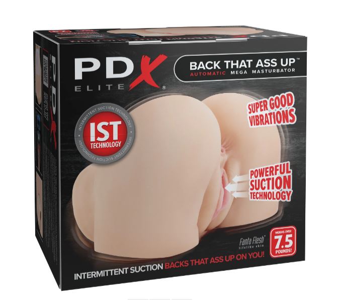 The BACK THAT ASS UP AUTOMATIC MEGA MASTURBATOR is changing the game with our amazing Intermittent Suction Technology (IST), designed to deliver an orgasmic experience that adds a powerful suction action to the mix! It has been equipped with 2 state-of-the-art motors that offer 6 suction and 12 vibration modes, allowing you to customize your experience with a combination of intensities, vibrating patterns, and suction patterns. The powerful suction action feels amazing and literally pulls you in for an experience like no other masturbator on the market! Made from our signature Fanta Flesh® material and weighing in at over 7.5 pounds, this mega masturbator offers an incredibly lifelike feel, mimicking the touch and texture of real skin. In addition to this, the super-fine details provide a level of realism that sets it apart from other masturbators on the market. It is also rechargeable and conveniently includes a USB charging cord so it’s always ready when you are! Whether it’s used for solo play or to add excitement with a partner, the combination of suction, vibration, and an amazing ass promises to deliver cum-guzzling results. We hope you’re ready, because it’s time to BACK THAT ASS UP!
