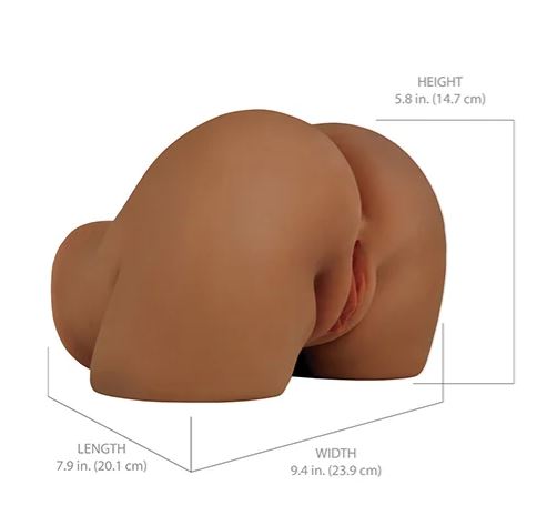 A long time ago, in a galaxy far away (okay, it hasn't been particularly long or far, but that intro works for anything), our friends at PDX Elite blew our minds, etc., with a line of ultra-real masturbators in magically realistic Fanta Flesh. Then, they kept right on going! Shake That Ass is a result, and it's spectacular. Great for those moments of orifice indecisiveness, this 360-degree masturbator features a detailed little pussy AND a snug ass, each with their very own texture and grip level. Plus, it vibrates! A lot. Two super-powered synchronized motors deep inside Shake That Ass make the squeezable cheeks quiver and the inner channels throb. A button at the back/top controls them. The TPR-based Fanta Flesh Shake That Ass Masturbator is phthalate-free, easy to clean (use soapy water or your favorite toy care fluid/foam), and plays well with any water or silicone-based lube you love. This Masturbator is USB rechargeable, and the cord you'll need is included. It's not waterproof, so please keep Shake on dry land. Total length - 7.9"/20.1cm Width - 9.4"/23.9cm Height - 5.8"/14.9cm Pussy and ass tunnel length - 4.5"/12.2cm each Tunnel diameter - stretches to over 3"/7.6cm Weight - over 6lbs/2.6kg