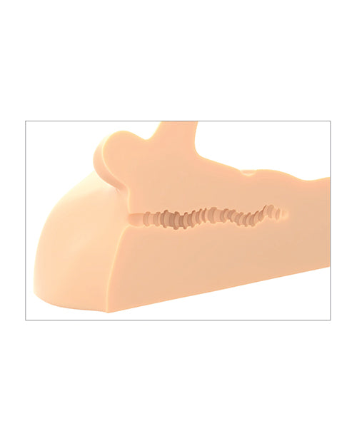 PDX Extreme Plus Perfect Ride Light Skin Tone Beige from Pipedream Products. Penetrate me! Or ride me. If you like trying new positions, then the Perfect Ride is exactly what you have been waiting for! With its huge poseable cock, you can change the direction and angle of it to your liking. Point it up, down, left, or right, it does not matter! It is completely up to you how you want to get screwed, and you will always be able to find the perfect position to ride this incredibly life like mega masturbator. You will also love the new EZ Bang Design. The hips are raised higher to make sure you can ride it in comfort, while the angle of the cock hits your sweet spot over and over again. And when it is your turn to screw, check out the raised anal cavity that makes your job even easier. It’s the perfect height and angle to stick your dick in without cramping up! Made from our incredibly realistic feeling Fanta Flesh, this 10 pounds mega masturbator is the most life like slam piece ever created. The soft, supple Fanta Flesh material warms to your body temperature and feels just like the real thing, only better! And when you are done, clean up is a snap with antibacterial cleaner and warm water.