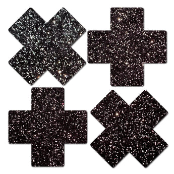 Petite Plus X Small Sparkle Black Plus Nipple Pasties from Pastease Brand. Petite Plus X Two Pair of Small Sparkle Black Plus Nipple Pasties by Pastease. Petite Plus X Two Pair of Small Sparkle Black Plus Nipple Pasties by Pastease are hand made in the USA of soft form fitting material that forms seamlessly to curves and resists wrinkling over hardening nipples. Just peel and stick on clean, dry skin. All Pastease feature latex free, medical grade, waterproof adhesive that stay securely in place for as long as you like and until they are gently removed. Conceal or reveal with Pastease nipple pasties when worn with a sexy outfit, daring bikini, sheer top, revealing dress, Hefty bag, body lotion, crazy costume, party theme or nothing at all! Includes Two 2 Pairs. Dimensions 2.1 inches by 2.1 inches. Coverage diameter 1.2 inches. Pastease are the Fun maker that brings out your inner Tease! All Pastease products are hand made, so the finished product you receive may vary slightly from the posted image. Go get your sexy fun freedom on! XOXO Pastease! Categories: Lingerie, Clothing, Sexy Costume Accessories, Naughty Role Play, Nipple Play, Pasties and Accessories. Primary image package. 2023.