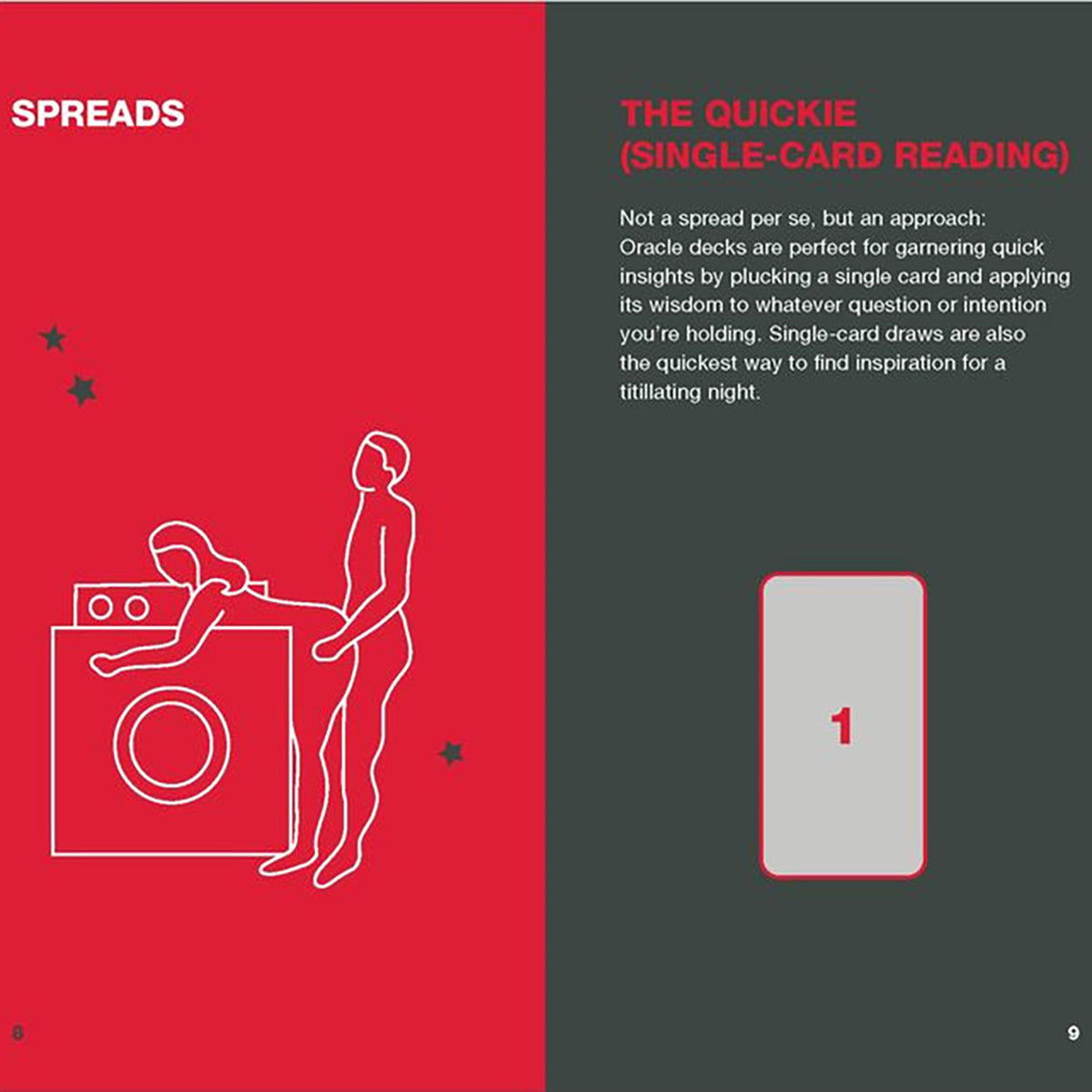 Get creative and have fun with 78 mind- (and body-) bending positions! Each card features an illustrated sex position to try (or ponder), along with life advice that is sure to enlighten and amuse. With an accompanying guidebook that provides instructions on how to pull cards and lay out different spreads, this deck encourages you to open your mind and body and explore new positions and perspectives. Pull a card solo or with your partner(s) and get ready to connect with your deepest desires!
