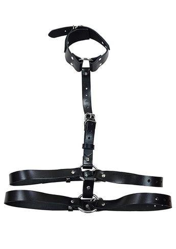 Rouge Female Leather Adjustable Body Harness with Choker