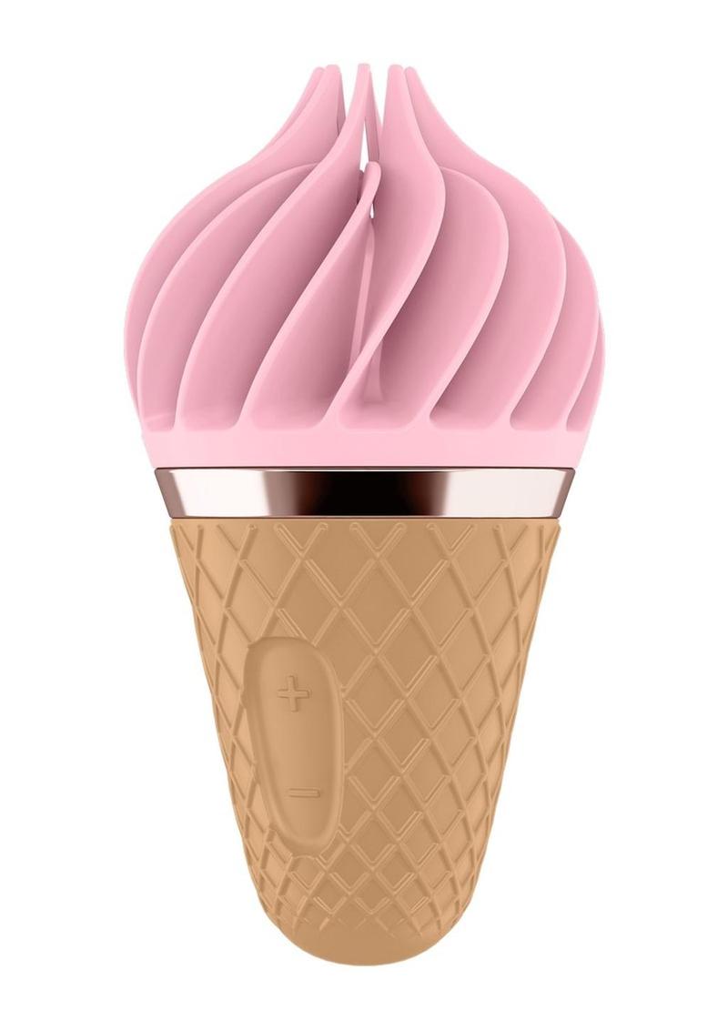 Bright, fresh and unbelievably sweet - that's the Sweet Treat! This pleasure-bringer will satisfy you like a cool sundae on a hot summer's day and sate your cravings. The unique ice cream waffle design and generous rotational power of this lay-on vibrator in medical grade silicone will make it the visual highlight of your toy collection, but thatb s not all it has to offer.