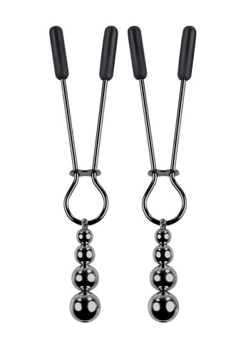 Discover the erotic sensation of nipple clamps with hanging beads that deliver a delicious weighted sensation and sexy visual appeal.