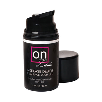 WHAT IS NEW & EXCITING ABOUT ON LIBIDO?The new and exciting thing about ON Libido is that FINALLY there is a product that stimulates an internal want and desire for sex. Typical arousal products create a physical reaction, but they do not necessarily make one think about sex and want it, like ON Libido.ON Libido is formulated to support a healthy sexual response and desire. It naturally corrects imbalances that may be robbing the user of their desire for sexual intimacy. In other words, it helps them get their mojo back!WHY IS ON LIBIDO IMPORTANT?Feeling turned on and wanting sex is part of a one's natural state of well-being. When they feel turned on and their internal sexual desire is present, they feel sexy, alive and passionate about ALL aspects of their life. To lose that desire is like losing a part of themself.HOW CAN ON LIBIDO HELP COUPLES?ON Libido can help couples feel more connected. Couples often fear that if one or both of them lose their desire for sexual activity, there is something wrong with their relationship emotionally. That would be a terrible mistake if the cause was actually something physiological that could be easily fixed. Using ON Libido helps users naturally correct internal imbalances and regain their sexual desire.Increases sexual desire and arousal naturallyIncreases blood flow to the vaginal areaMakes her more sensitive to stimulationHelps balance hormonesHelps boost energy and elevate moodMade with natural ingredientsThe airless pump is hygienic & preserves the formula's potencyIt is not a personal lubricantGlycerin and Paraben-freeNo artificial dyes, perfumes, or harsh preservatives