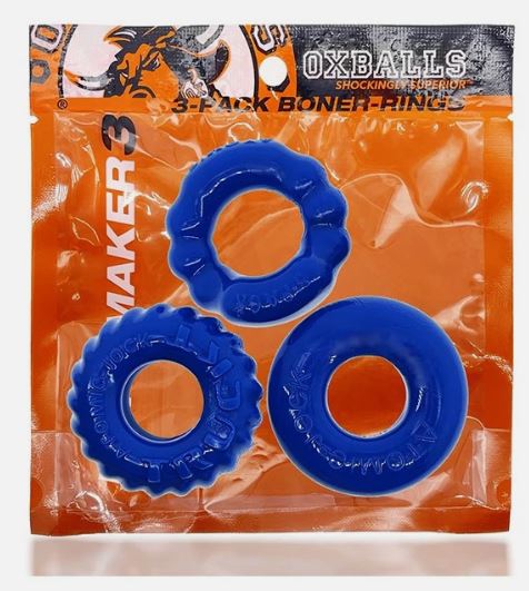 Oxballs Bonemaker 3-Pack Cockring Pool Blue OX-306. The BONEMAKER 3-pack is Oxballs' three best different cockrings for 3X the bone…3 ways to grip your junk…or your balls…or both.