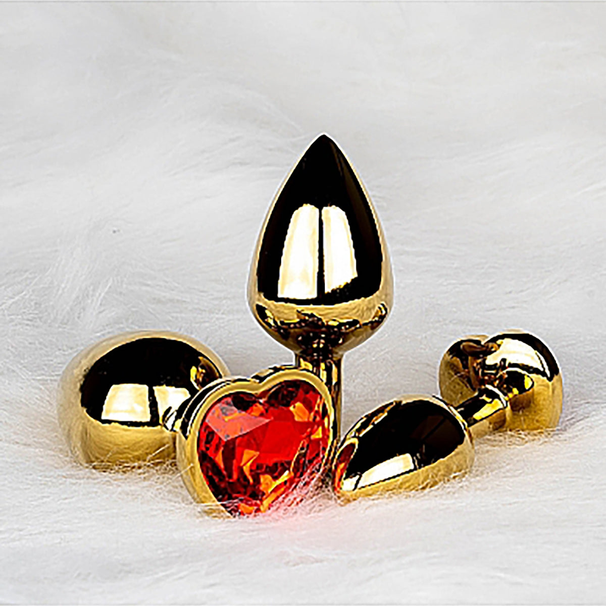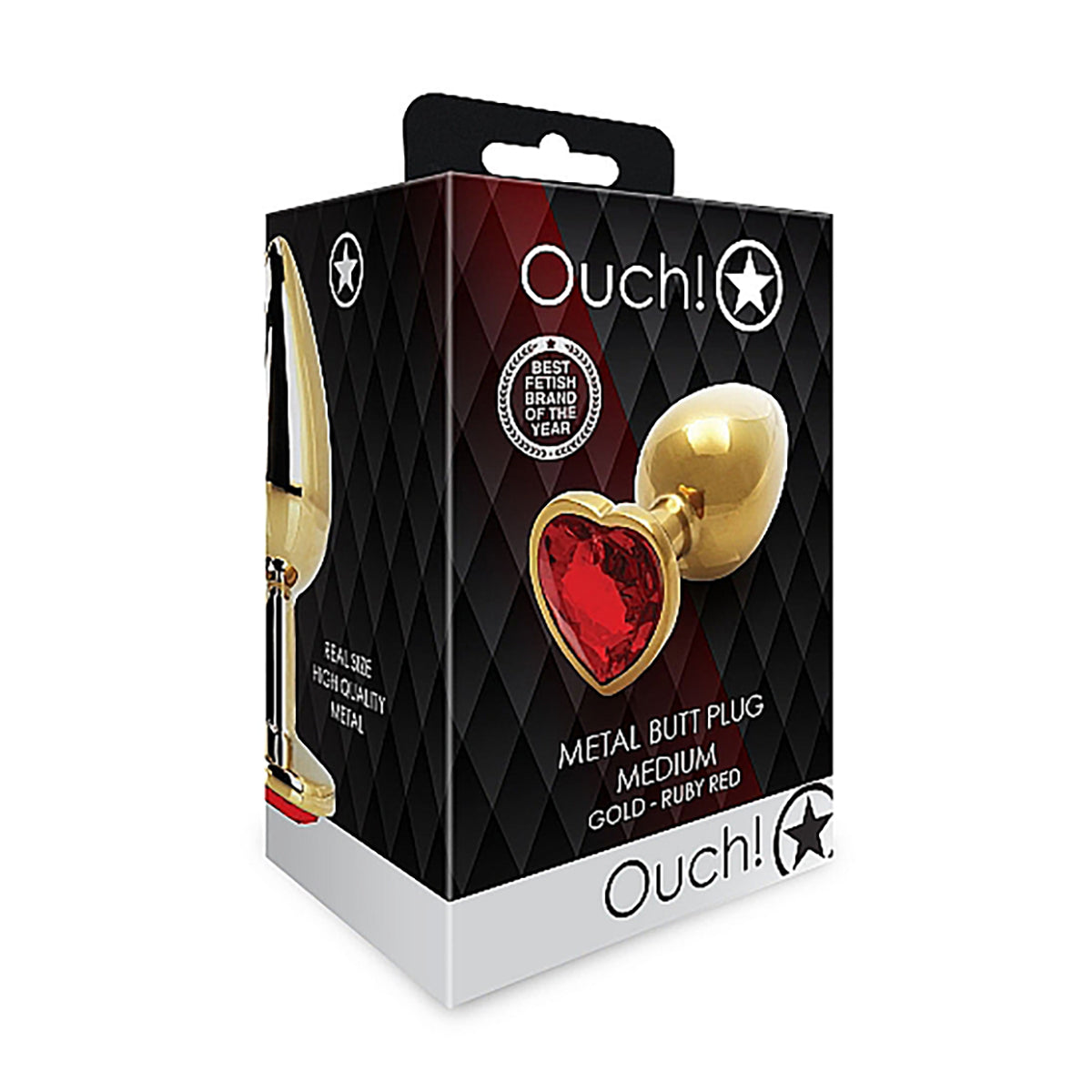Shots Ouch! Heart Gem Butt Plug Medium - Gold/Ruby Red