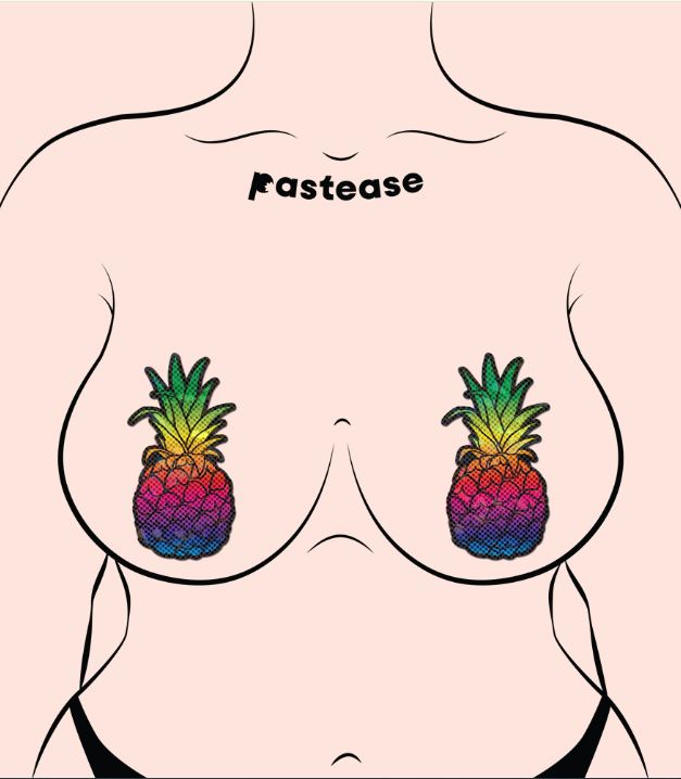 Introducing Rainbow Pineapple Sparkling Breast Pasties by Pastease: Tropical Vibes with a Cheeky Twist!