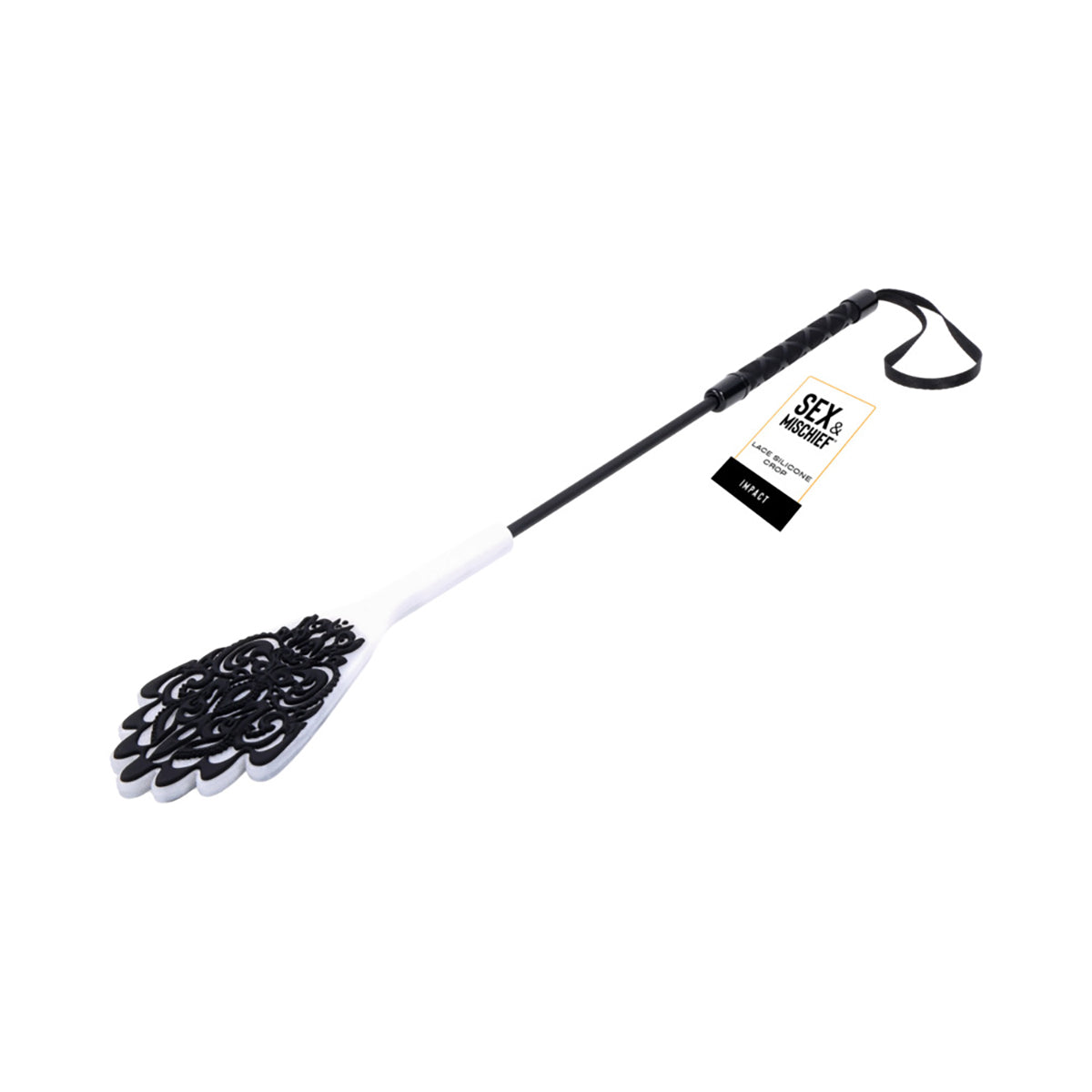 Leave a lasting mark of desire with the Lace Silicone Crop, an elegant and sultry twist on a classic. Featuring a 100% silicone lace-patterned tip, this crop delivers a sharp, tantalizing sting while leaving behind a delicate trace of elegance and allure. The intricate lace design adds a layer of erotic indulgence, making each strike as mesmerizing as it is thrilling. From a teasing caress to a more commanding impact, the Lace Silicone Crop allows every moment to linger with dark romance and seductive power.