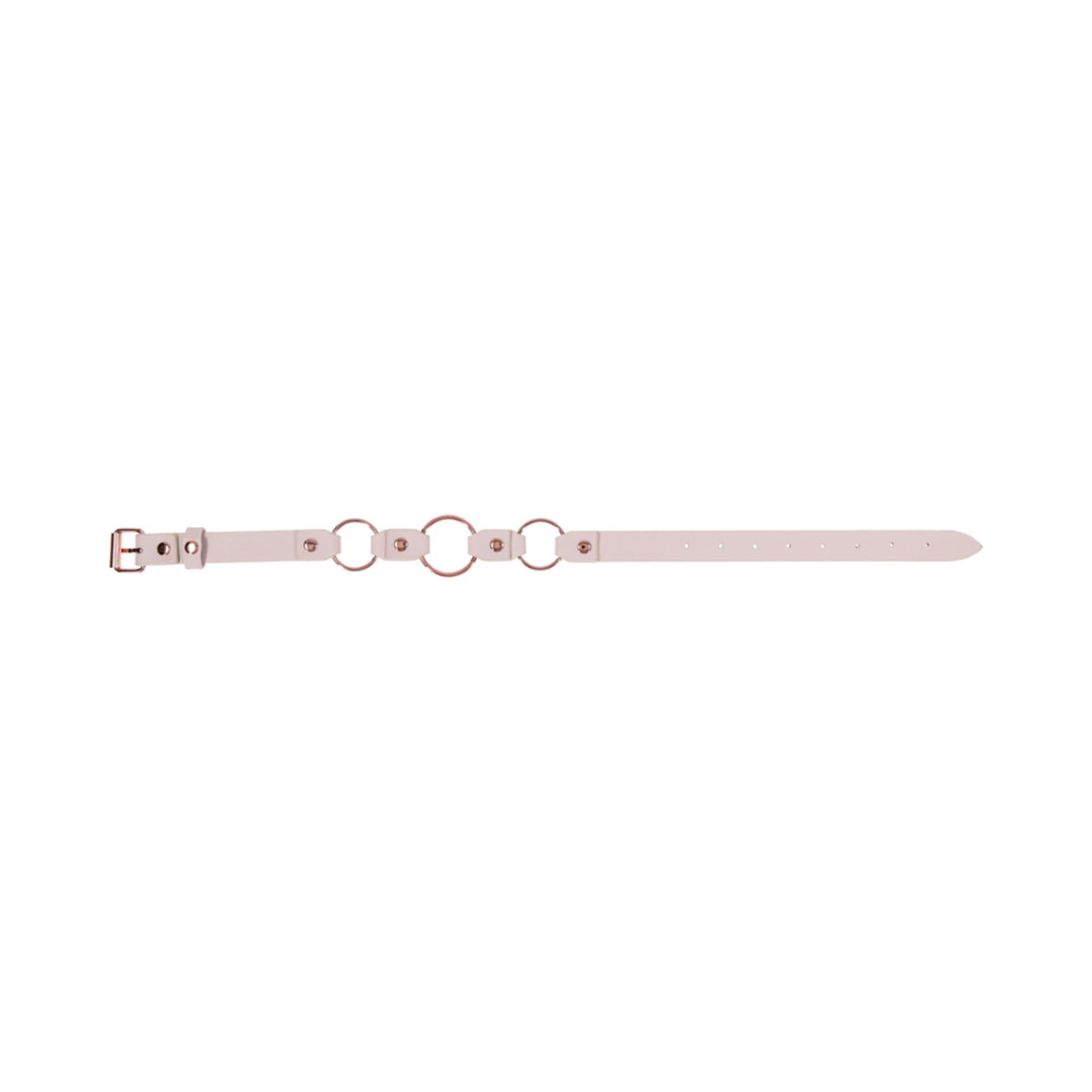 Stay decked in only the finest luxury BDSM wear with the Peaches 'N CreaMe Ring Day Collar. Stylish and seductive, this bold accessory turns heads and sparks curiosity, hinting at your kink to those in the know. Crafted from smooth, comfortable faux leather, it features three rose gold rings that gleam with every move. Pair it with your favorite leash, a teasing set of clamps, or wear it solo to show you're ripe for the taking.