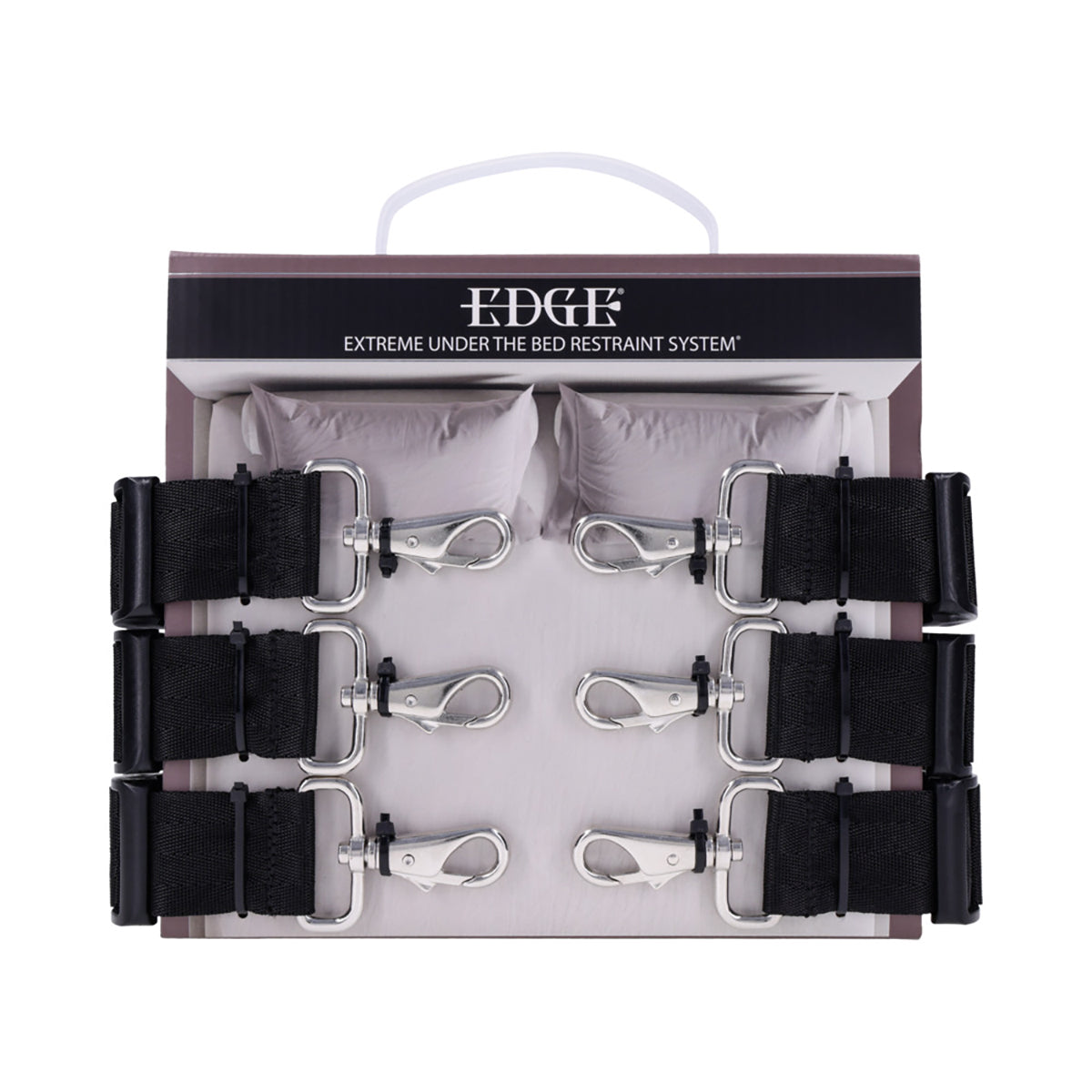 Unleash your deepest desires and dominate your lover with the Edge Extreme Under the Bed Restraint System. This quick-to-install bed bondage system transforms any bed into a dungeon of pleasure in minutes. Secure those limbs and take control, turning your partner's body into your personal playground. Perfect for home or on-the-go adventures, this versatile system fits any size mattress and can even be used around some doors. With six points of connection, you can attach cuffs, a collar, and more to create your ultimate fantasy scenario. The easy-on push clips promise unmatched strength and durability, ensuring your captive remains firmly in place no matter how wild your play becomes. Get ready to push the limits and indulge in the ultimate power exchange with Edge.