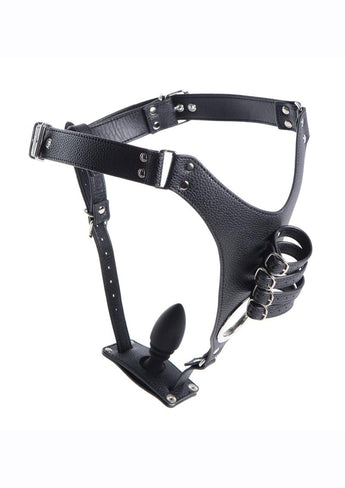 - A Chastity Harness For Leather Lovers: Restrain your submissives sexuality with this intense chastity harness; Designed to restrain your lovers package until they earn their freedom