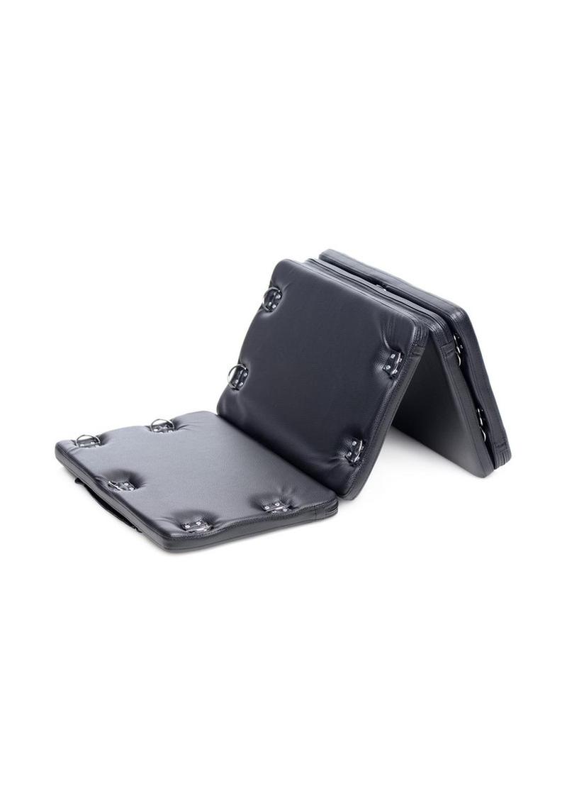 Bigger and better than before, the XL Bondage Board presents you with 21 extra inches and 18 D-ring attachment points to pair with your favorite restraints and turn your fantasy into reality! Turn any room into a dungeon with a unique piece of BDSM furniture that discreetly folds up and tucks away when not in use. The easy-carry handles make it convenient to take over to your partners house or on a kinky vacation. A total of 4 folding sections create greater versatility of positions, allowing you to put your plaything in doggy-style or keep their front helplessly exposed. The XL Bondage Board is comfortably cushioned for hours of pleasure play.