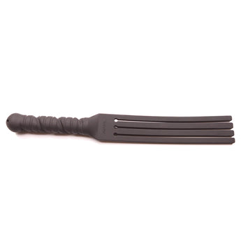 Tawse It Overboard from Tantus Silicone. Tawses pronounced taws were used as corporal punishment in public schools in Scotland until 1987. The impact of the standard Leather Tawse can be very intense; even more so in Tantus Silicone. Tawse It Overboard features four tongues, each .38 inch thick, 8.5 inches in length. The density is intense. Because it is Tantus Silicone, it transmits energy very effectively and takes very little in terms of strike force. The handle 1.5 inches by 6 inches, is very effective for blunt impact play and as a potential heavily textured dildo for internal use. And, because the Tawse It Overboard is made from Tantus Silicone you can thoroughly cleanse the toy. With a little care, Tawse It Overboard will last a lifetime. Safe for your body. Made from Tantus own unique formula of 100% Ultra Premium Silicone. Easy to clean. Eco-friendly, hypoallergenic, hygienic. Boilable, bleachable and dishwasher safe top shelf. Handle diameter 1.48 inches. Tongue width 0.4 inch, length 8.75 inches. Total length 17 inches. Video. Categories: Bondage, Fetish, Kink, Sex Toys for Couples, Whips, Paddles, Ticklers. 2022.