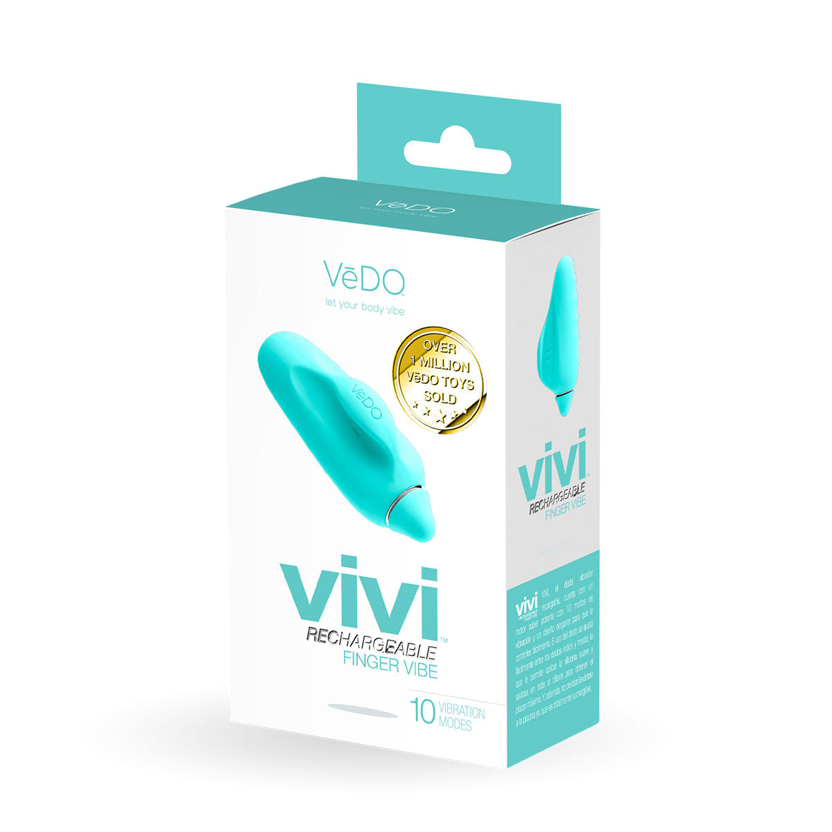 Vivi rechargeable finger vibe boasts a super powerful motor with 10 vibration modes and a sleek design for effortless control. The ergonomic finger handle easily fits between the index and middle fingers, allowing easy maneuverability with the silky smooth, ribbed silicone over all the most sensitive areas. Don't be afraid to jump in the tub - Vivi is completely submersible!