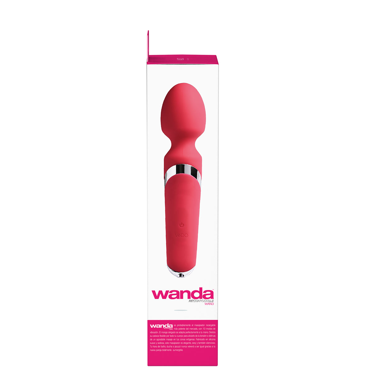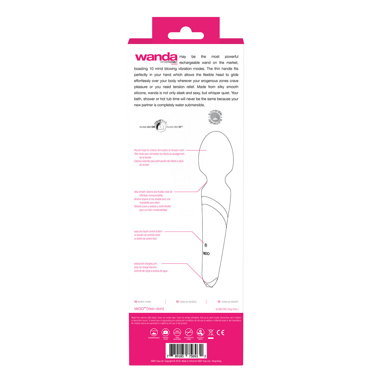Wanda rechargeable wand may be the most powerful rechargeable wand on the market, boasting 10 mind blowing vibration modes. The thin handle fits perfectly in the hand which allows the flexible head to glide effortlessly all over the body wherever the erogenous zones crave pleasure. Made from silky smooth silicone, wanda is not only sleek and sexy, but whisper quiet. The bath, shower or hot tub time will never be the same because this new partner is completely water submersible.
