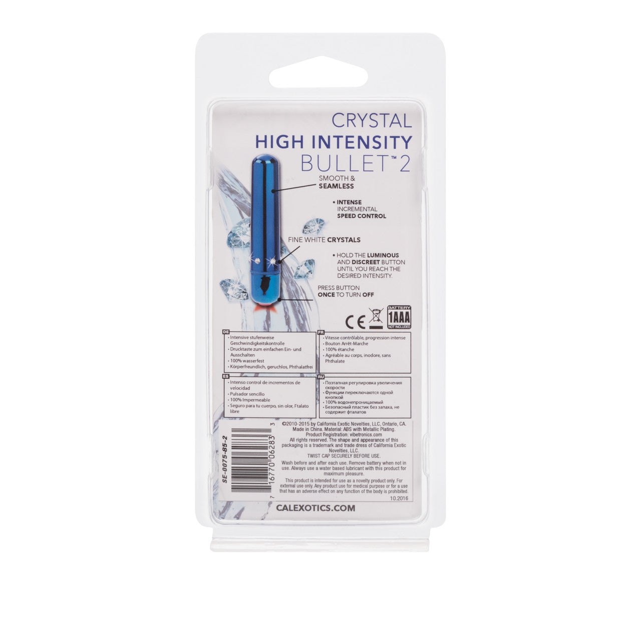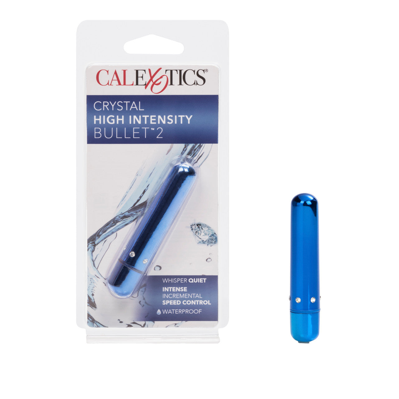 (WD) Crystal High Intensity Bullet 2 Vibrator from California Exotic Novelties. Smooth, seamless, discreet bullet vibrators adorned with fine white crystals. That is our beautiful Crystal High Intensity Bullets 2. Whisper quiet operation plus an incremental speed control that maximizes your intensity and pleasure make these minis a force to be pleasurably reckoned with. A luminous light button allows one tap shut off. Crafted from durable, safe ABS Plastic with metallic plating, the bullets are as potent as they are convenient. Plus, these bullets feature an extended battery life: 8+ hours at low speed, 4+ hours at high speed. Find the passionate enjoyment you crave and achieve incredible satisfaction. If you are ready for the best in satisfaction and want to add more fun to your bedroom experience, then this bullet vibrator will help you achieve all the sensation you crave whether you are experiencing your pleasure solo or with a partner. Let it lead you to a more thrilling sensual experience and an adventure in gratification that can not be beat. Smooth, seamless, discreet bullets adorned with fine white crystals. Extended battery life: 8+ hours at low speed, 4+ hours at high speed. Intense battery power. Whisper quiet. Unlimited power with incremental speed control. Luminous light with one tap shut off. Bullet vibrator measures 3.5 inches long by .75 inch. Special features of sex toy waterproof vibrations plus multiple speeds. Made using phthalate free, non-toxic materials: ABS Plastic with metallic plating. Vibrating sex toy requires 1 AAA battery, not included. Crystal High Intensity Bullet 2 is a registered trademark for California Exotic Novelties. Sex toys and sexual wellness. Categories: Vibrators, Bullets, Eggs, Sex Toys for Women, Vibrating Bullets and Eggs. No longer available. IA. 12/13/2023.
