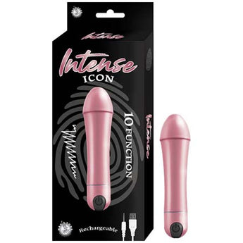 (WD) Intense Icon Copper Vibrator from Nasstoys of New York.10 functions vibrator. Most powerful motor. Waterproof vibrations. Phthalates free, RoHS approved material: Aluminum. Size: length 4 inches, width 1 inch, diameter at the largest area 3.5 inches. Rechargeable vibrations. No batteries necessary. Charging time 40 minutes. Use time 60 minutes. USB Rechargeable. Vibrator feature 10 vibration modes. Categories: Bullets, Eggs, Rechargeable Vibrators, Sex Toys for Women, Vibrating Bullets and Eggs. No longer available. 2023.