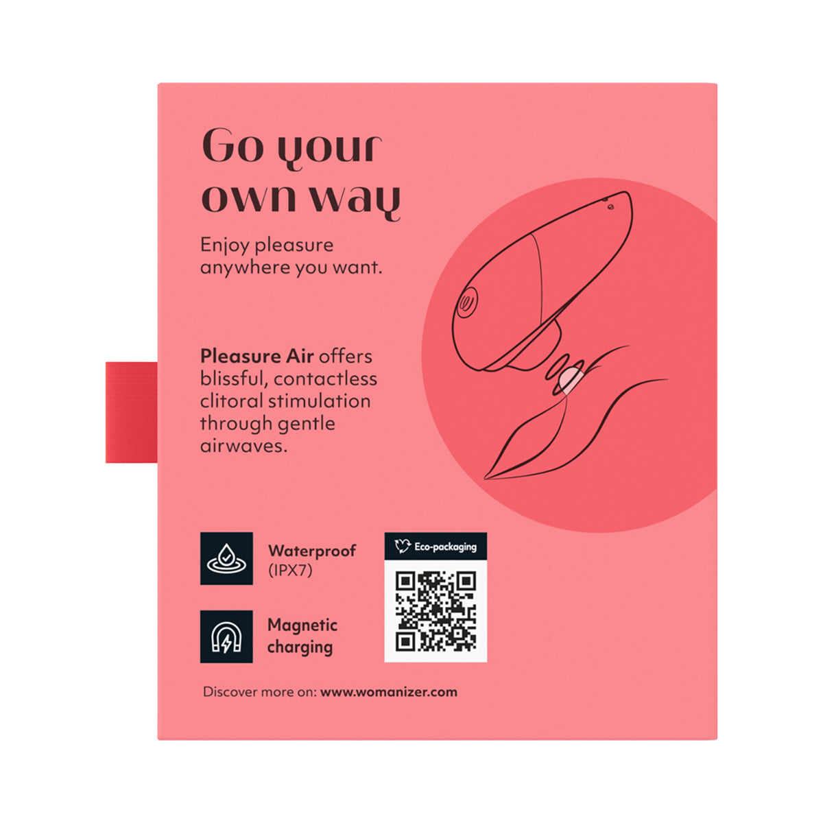• Pleasure Air Technology: Made for you and your body - All Womanizer products feature a unique innovation called Pleasure Air Technology. Why is it so special? Your clitoris is stimulated without direct contact. Gentle air vibrations suck and massage together at the same time to provide an unprecedented orgasmic feeling.