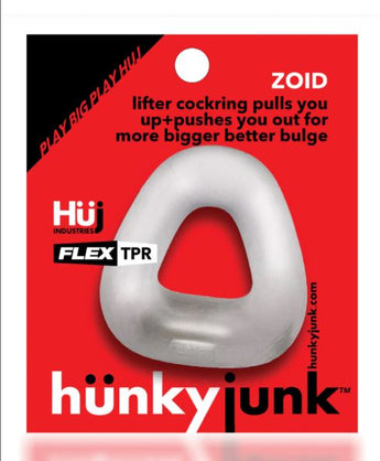 ZOID is a weird shape cockring, but it does stuff you want: it’s super rubbery but strong and bouncy when stretched…the shape is wider at the base narrow on top—this keeps ZOID positioned where you want, but adds more under-sack lift. That is more bulge, more lift, more of your hunky junk.